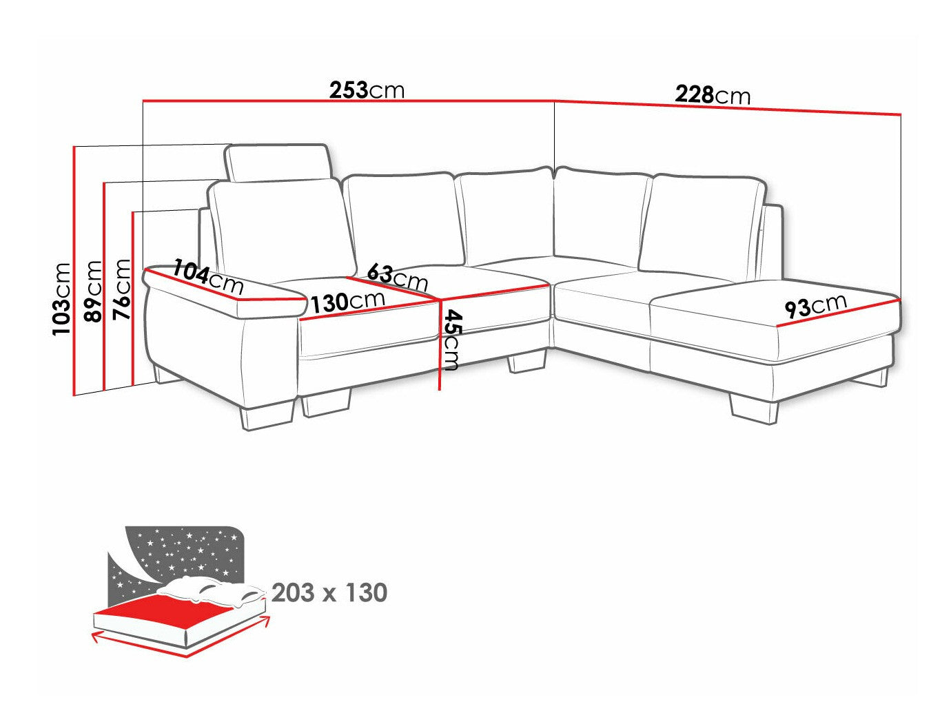 A fekvőfelület hossza203 cm