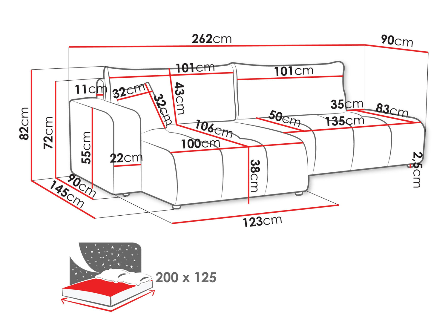 Sarokkanapé Narożnik FURYN OTWARTY, Szín: Coral 80, Változatok: Jobbos