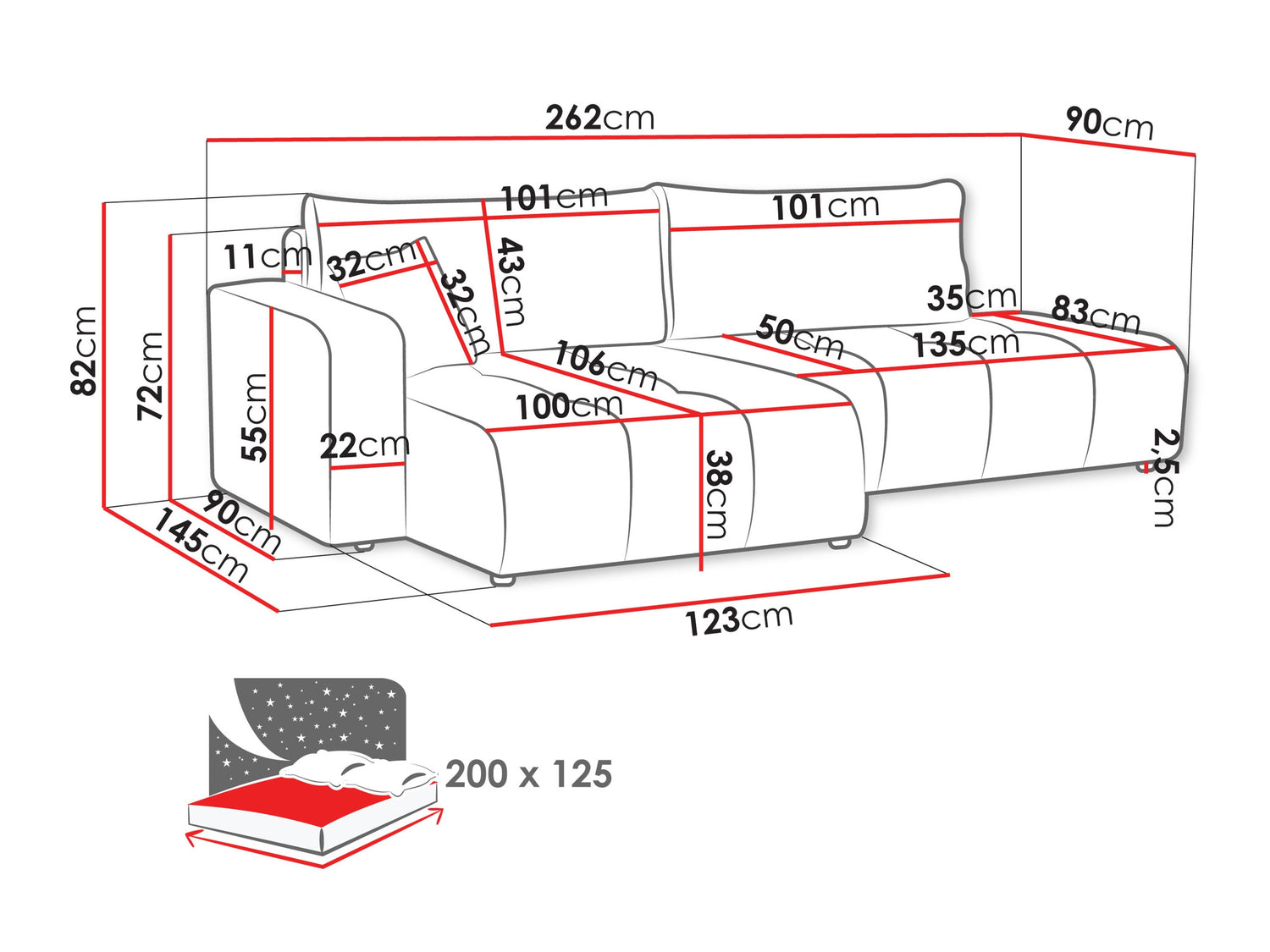 Sarokkanapé Narożnik FURYN OTWARTY, Szín: Velo 636, Változatok: Balos