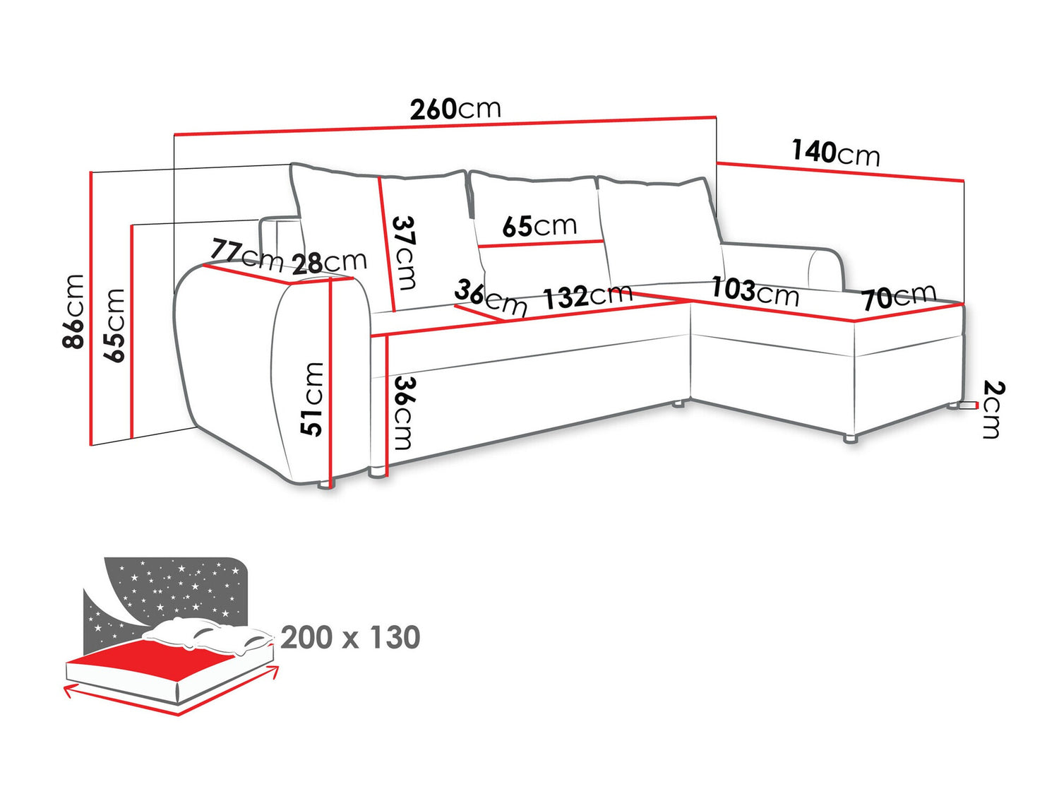 Sarokkanapé Narożnik MADER L, Szín: Lux 05 + Lux 23