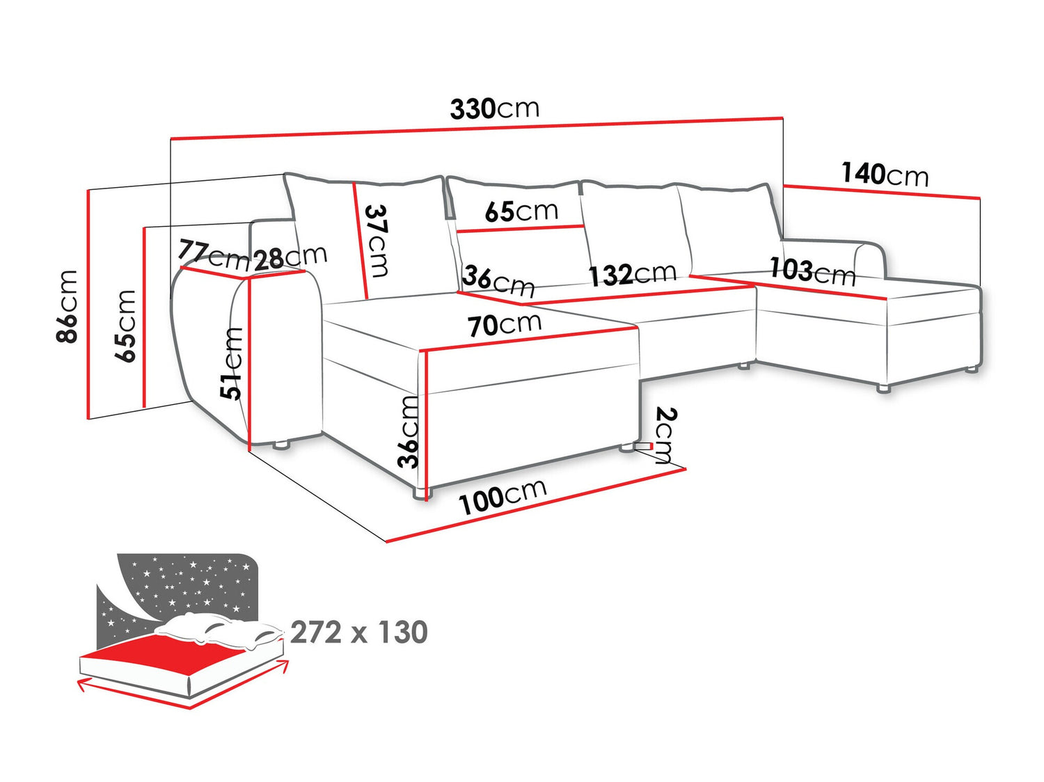 A fekvőfelület hossza272 cm