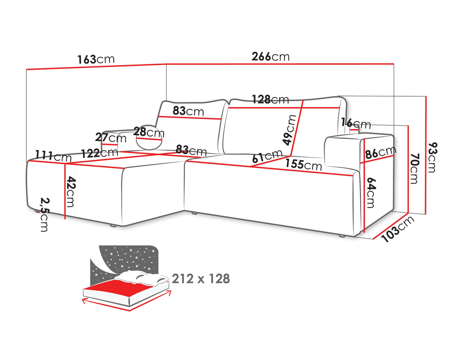 Ágyneműtartó méretei25 x 123 x 64 cm