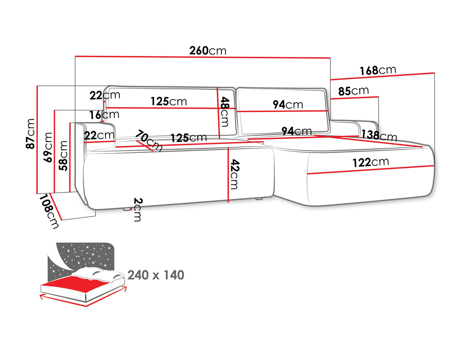 Sarokkanapé Narożnik MONO, Szín: Velo 623, Változatok: Balos