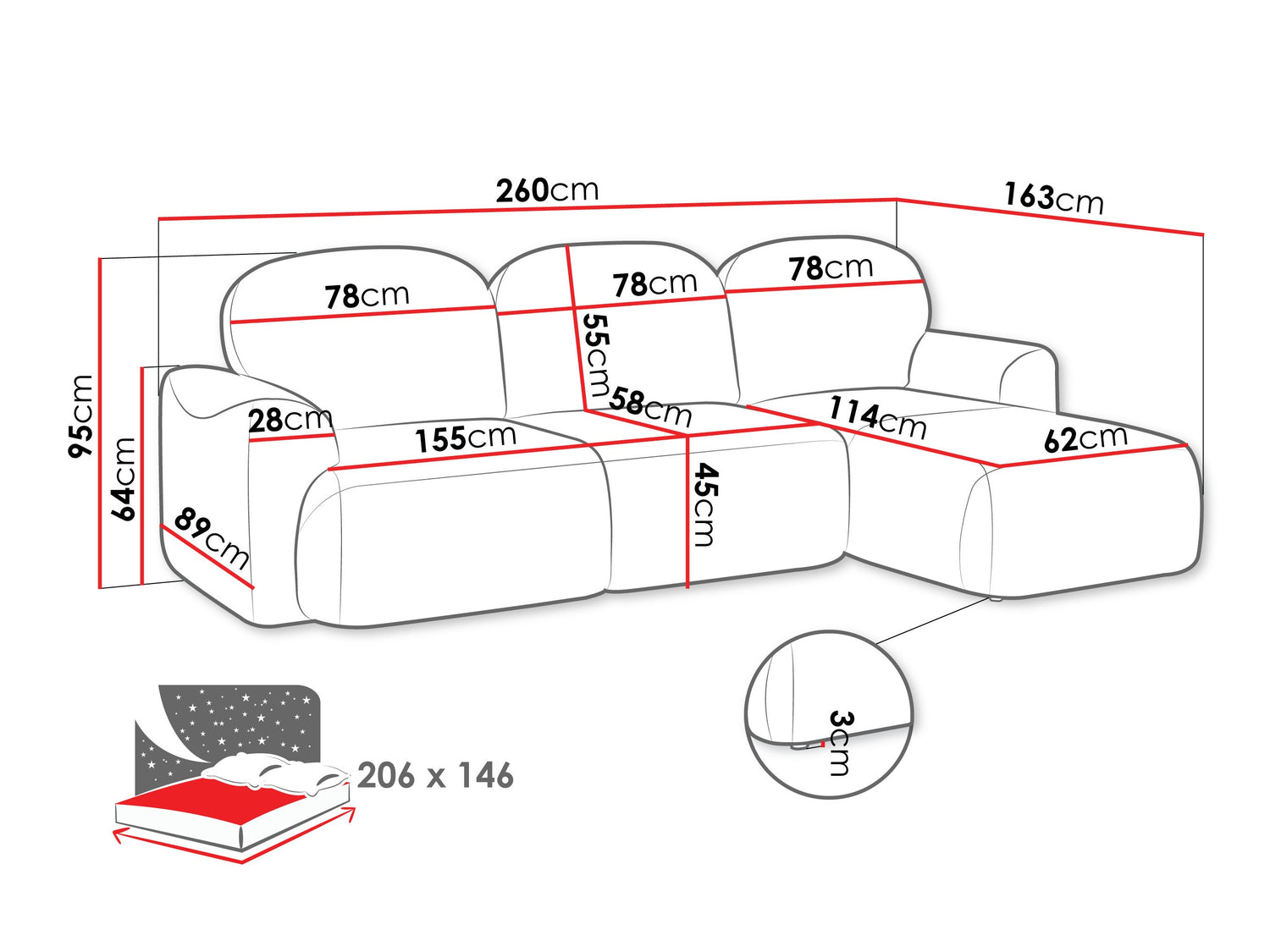 Sarokkanapé Narożnik NABU, Szín: Cremona 96, Változatok: Jobbos