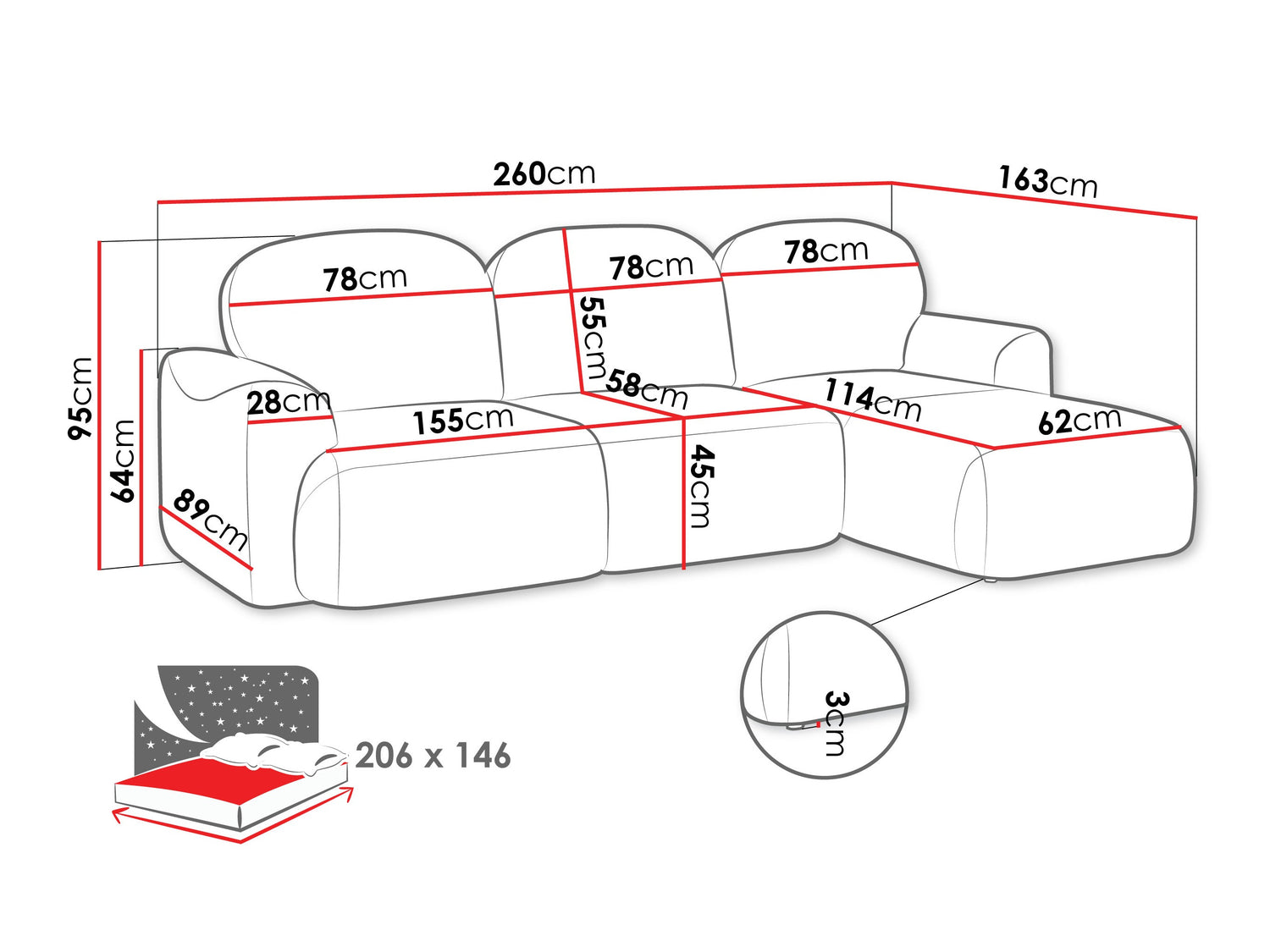 Sarokkanapé Narożnik NABU, Szín: Cremona 97, Változatok: Jobbos
