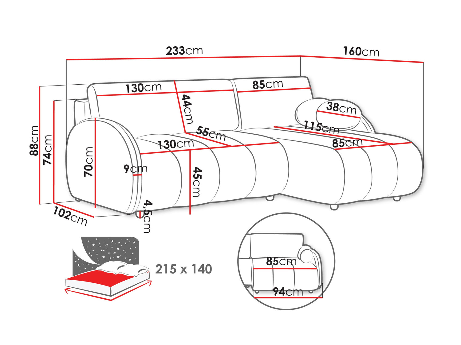 Sarokkanapé ZARA L 2r+LC, Szín: Sereno 686