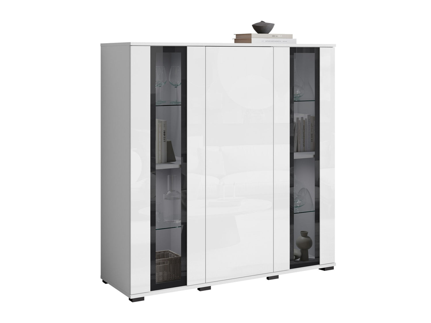 Szekrény CARO HB 120, Szín: Fehér + Fényes fehér, Led világítás: Nem