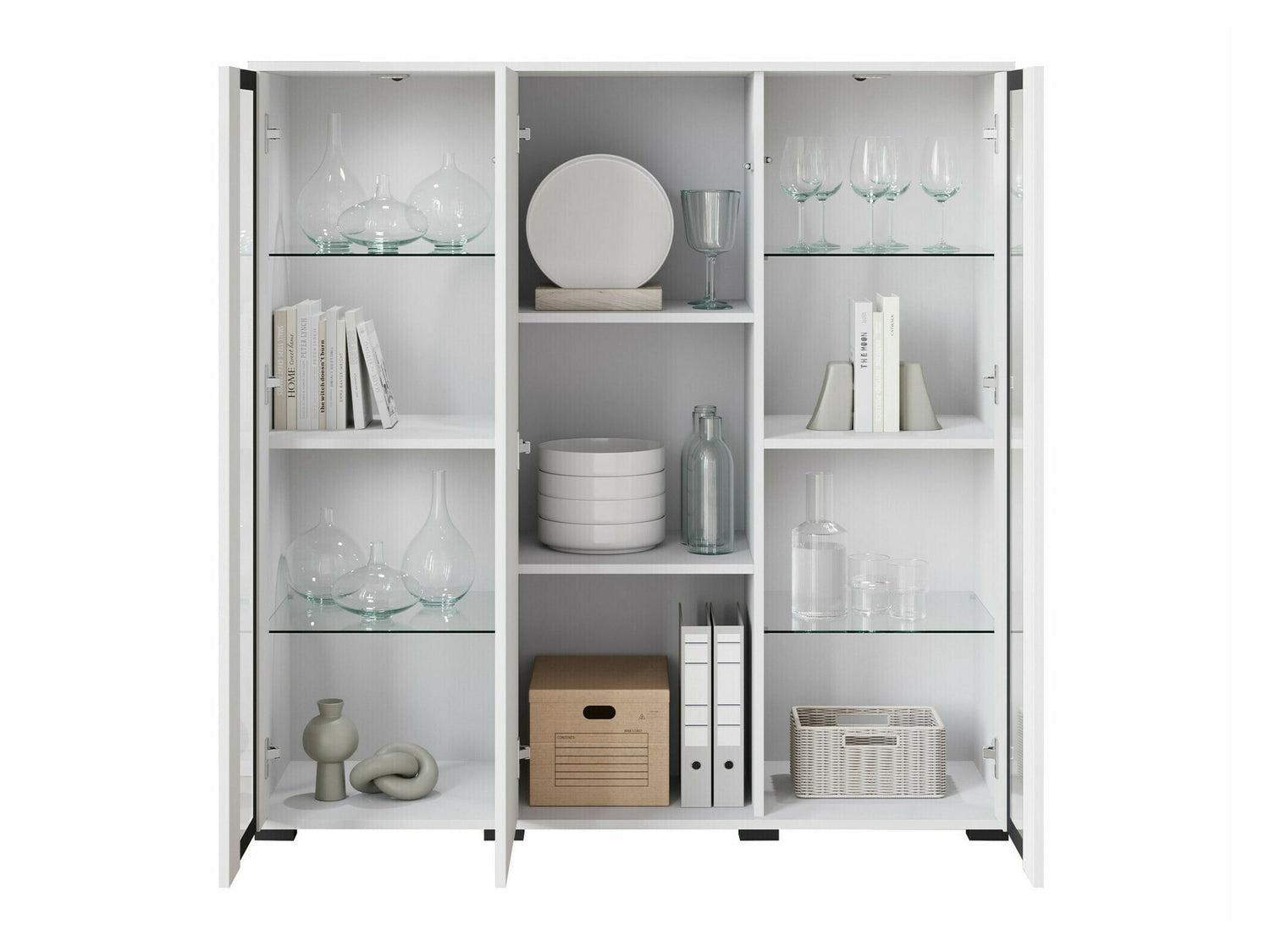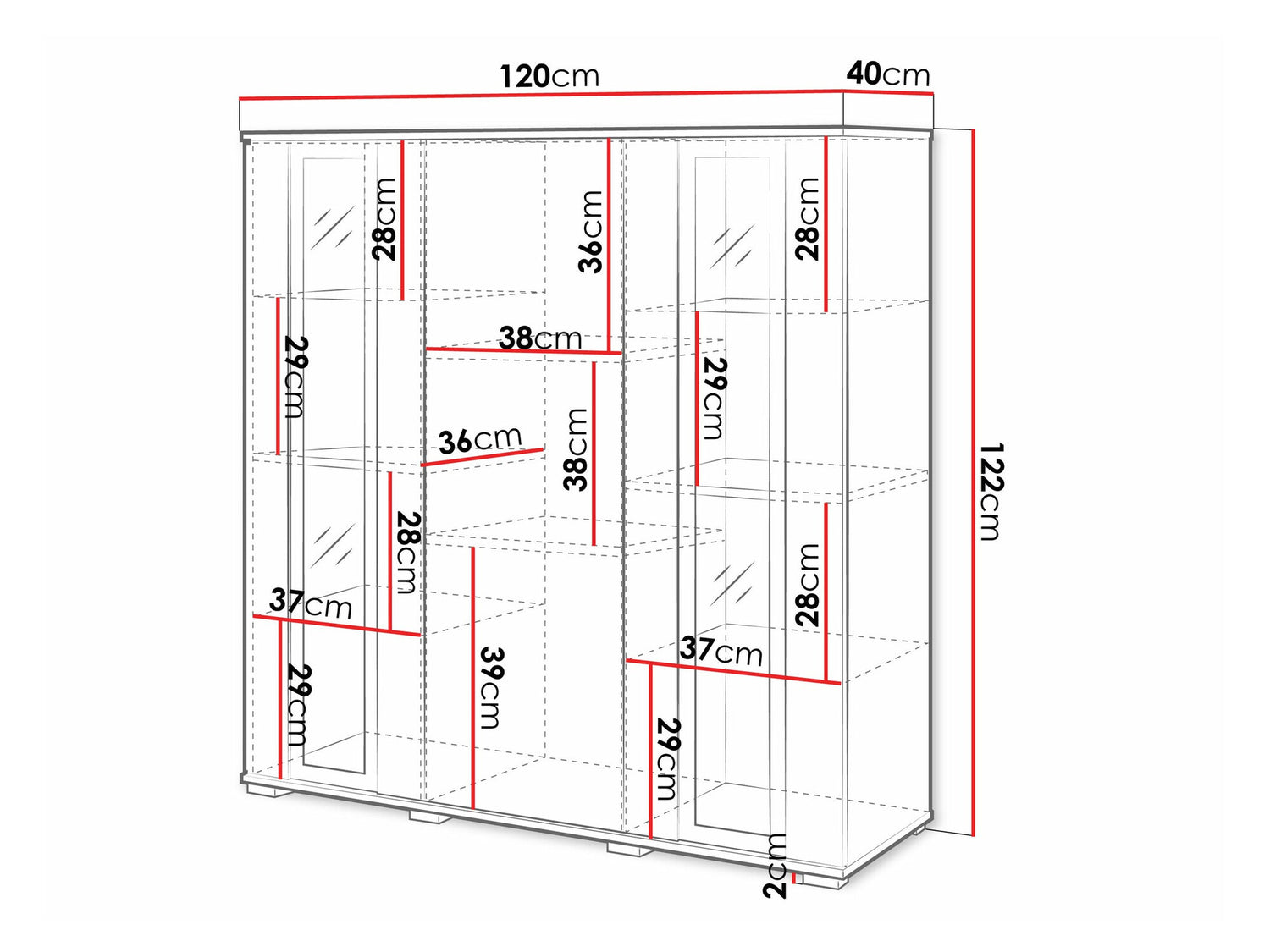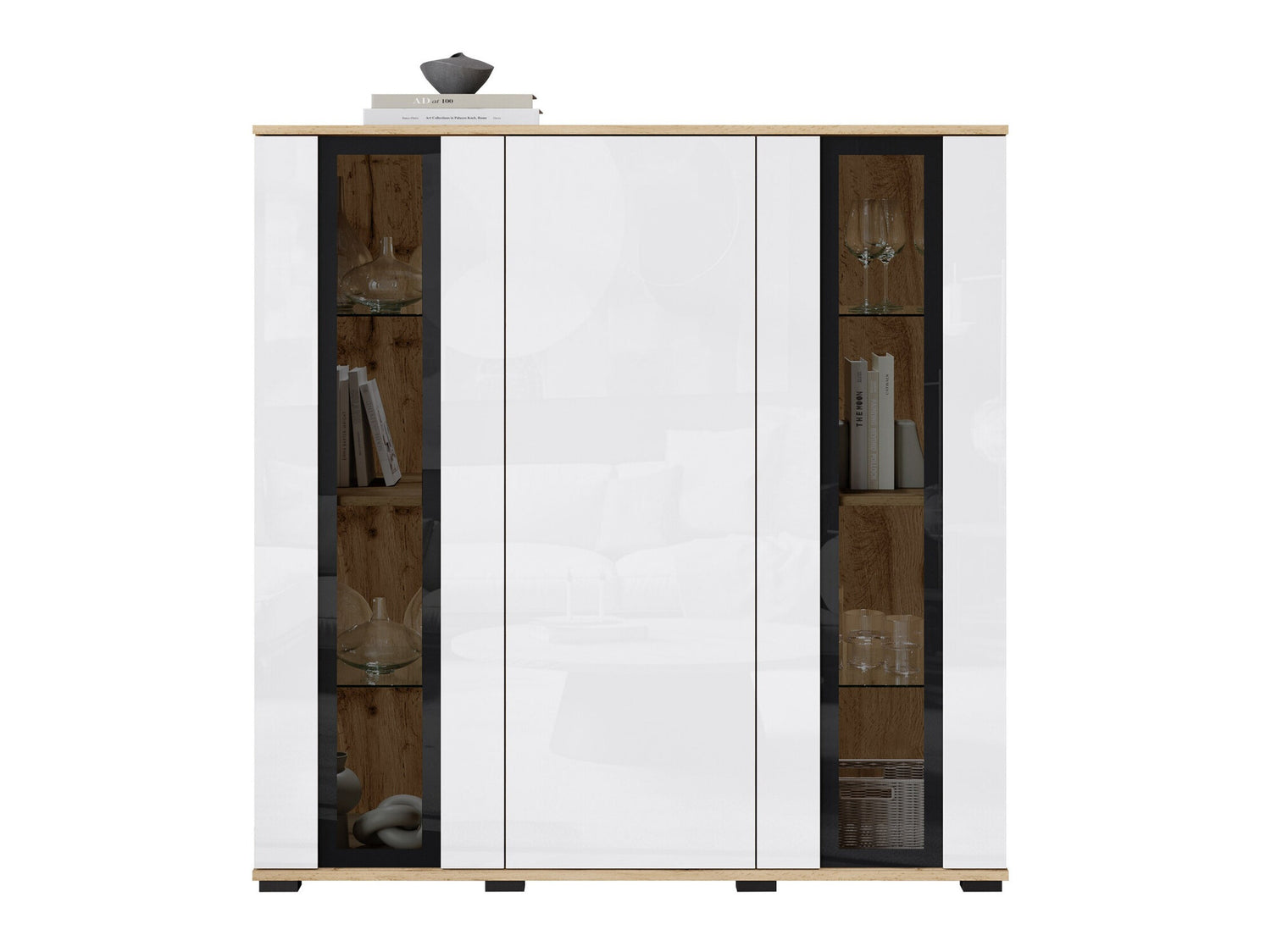 Szekrény CARO HB 120, Szín: Wotan tölgy + Fényes fehér, Led világítás: Nem
