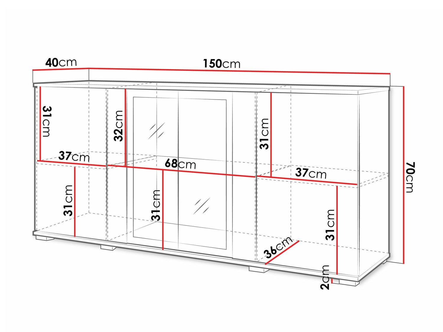 Szekrény CARO SB 154, Szín: Fehér + Fényes fehér, Led világítás: Nem