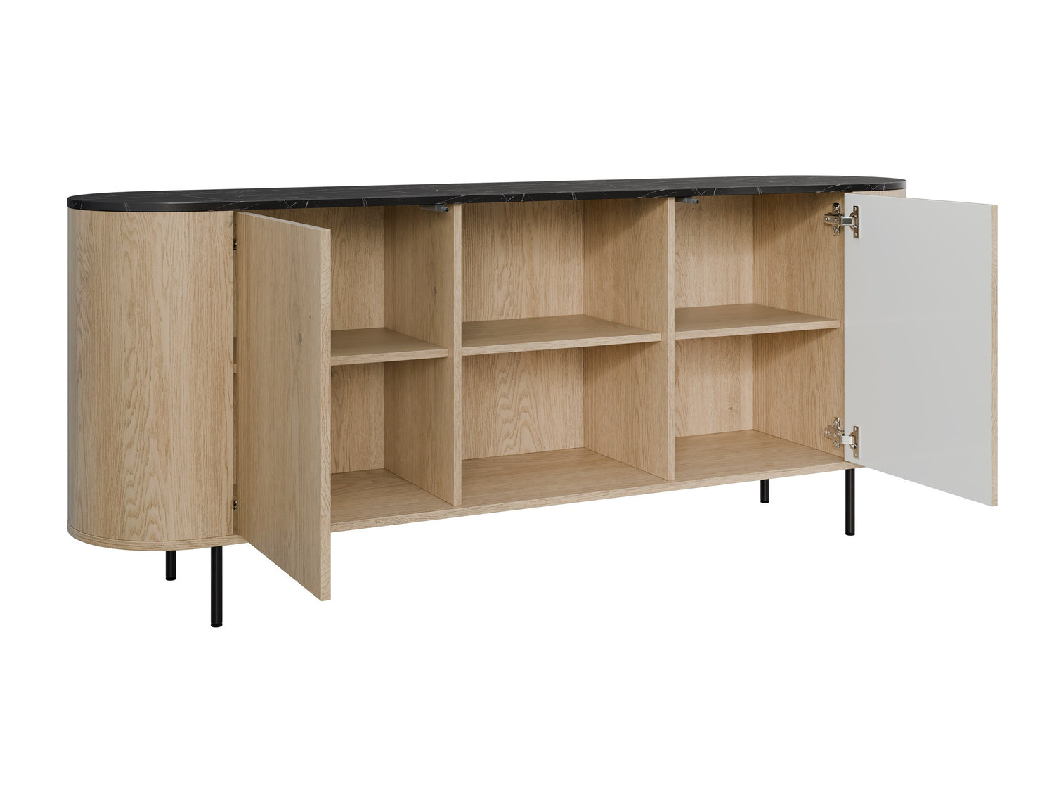 Szekrény Komoda 180 2D LYGRINT, Színek: Fehér márvány + Aranysárga