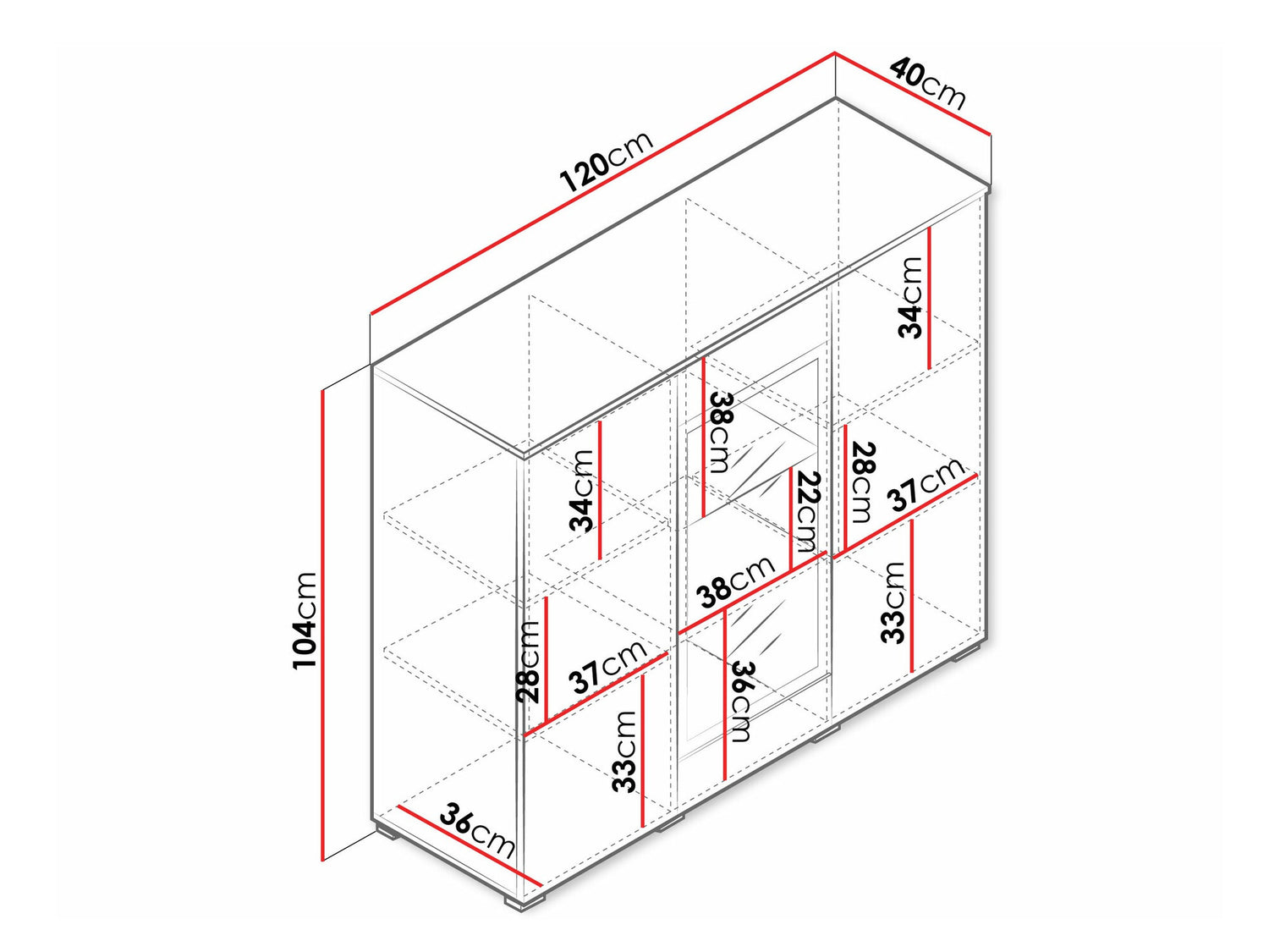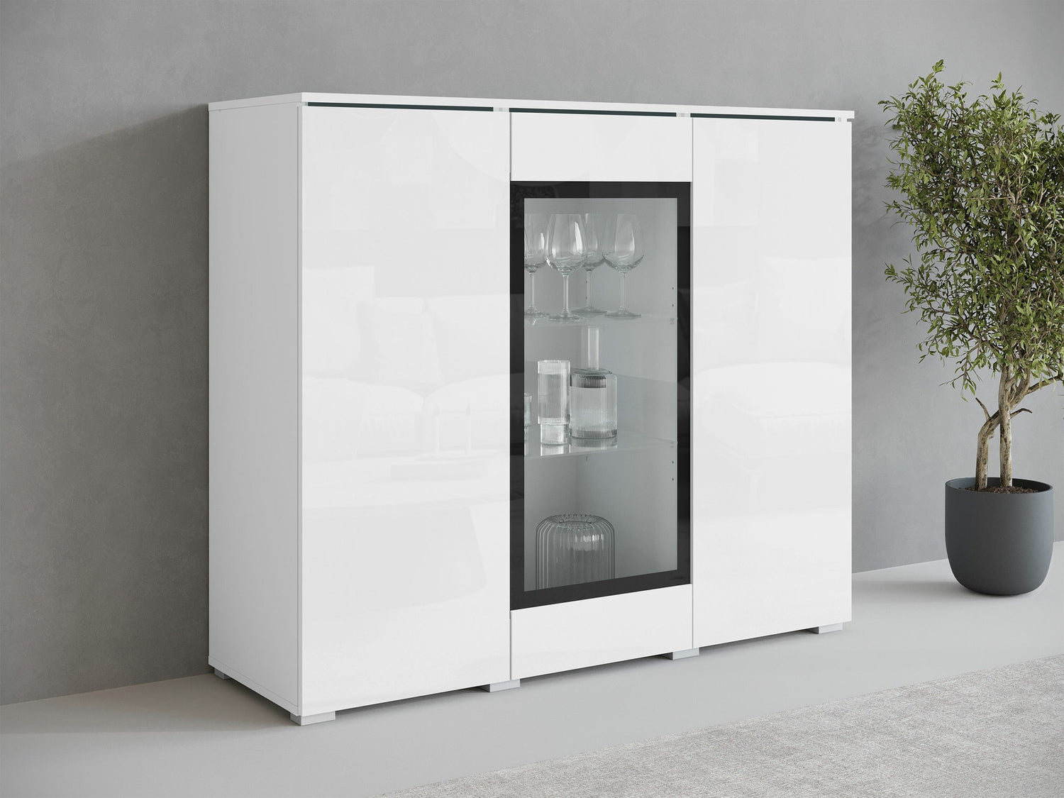 Szekrény Komoda VERA 120, Szín: Fehér + Fényes fehér, Led világítás: Nem