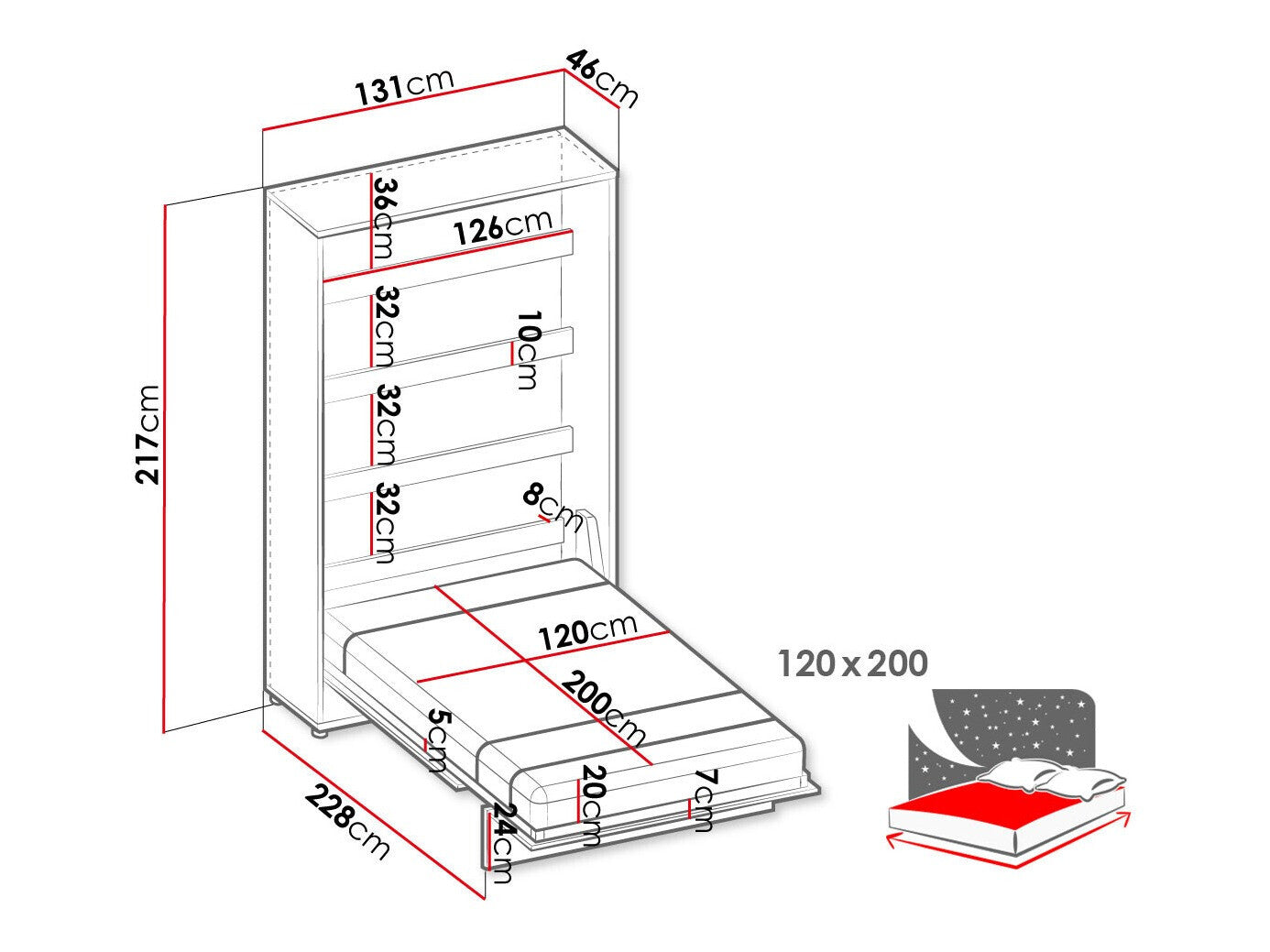 Szekrényágy Półkotapczan pionemwy CONCEPT JUNIOR CJ-02, Alvó felület mérete: 120 x 200 cm, Led világítás: Igen