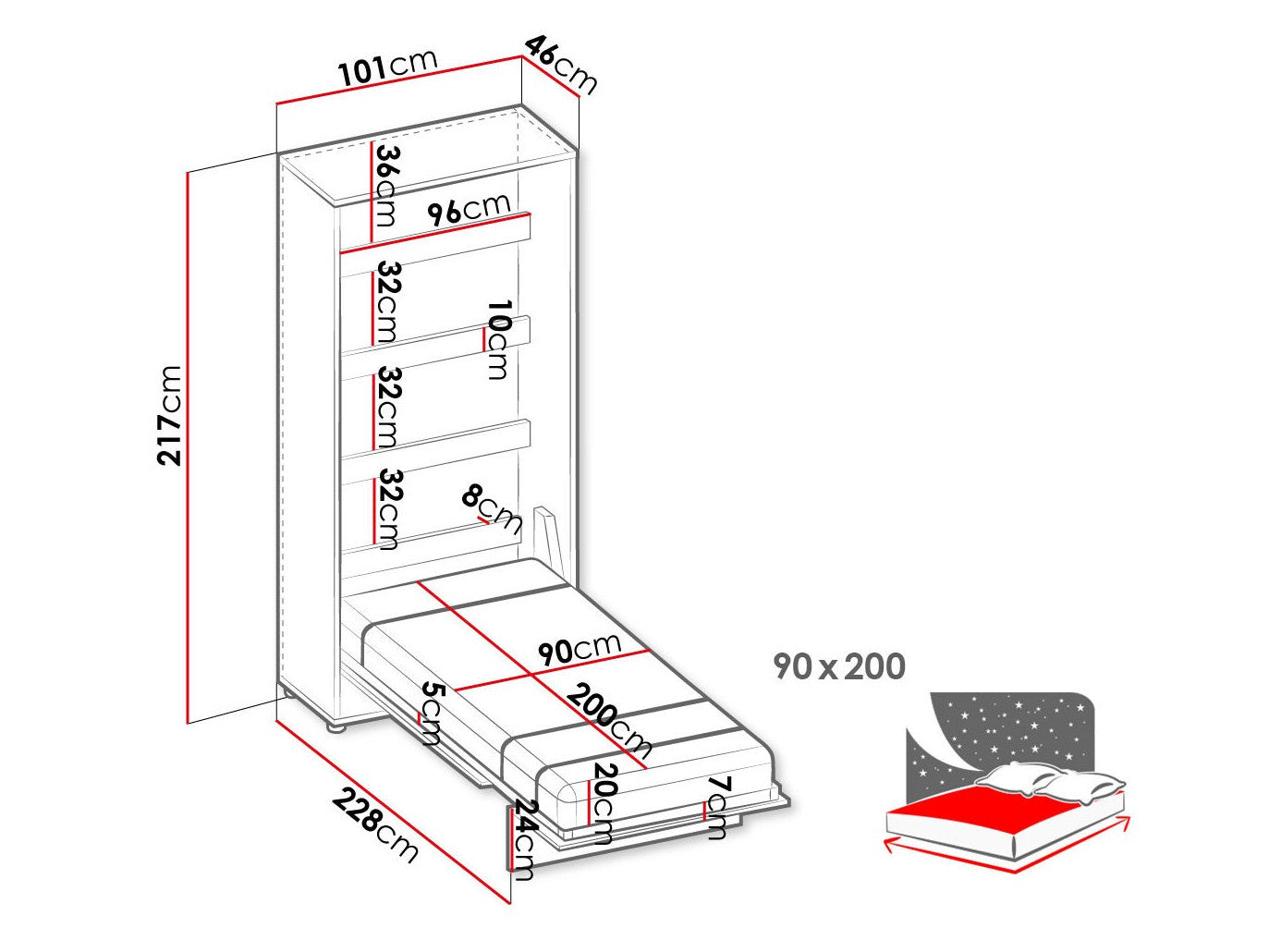 Szekrényágy Półkotapczan pionemwy CONCEPT JUNIOR CJ-02, Alvó felület mérete: 90 x 200 cm, Led világítás: Igen