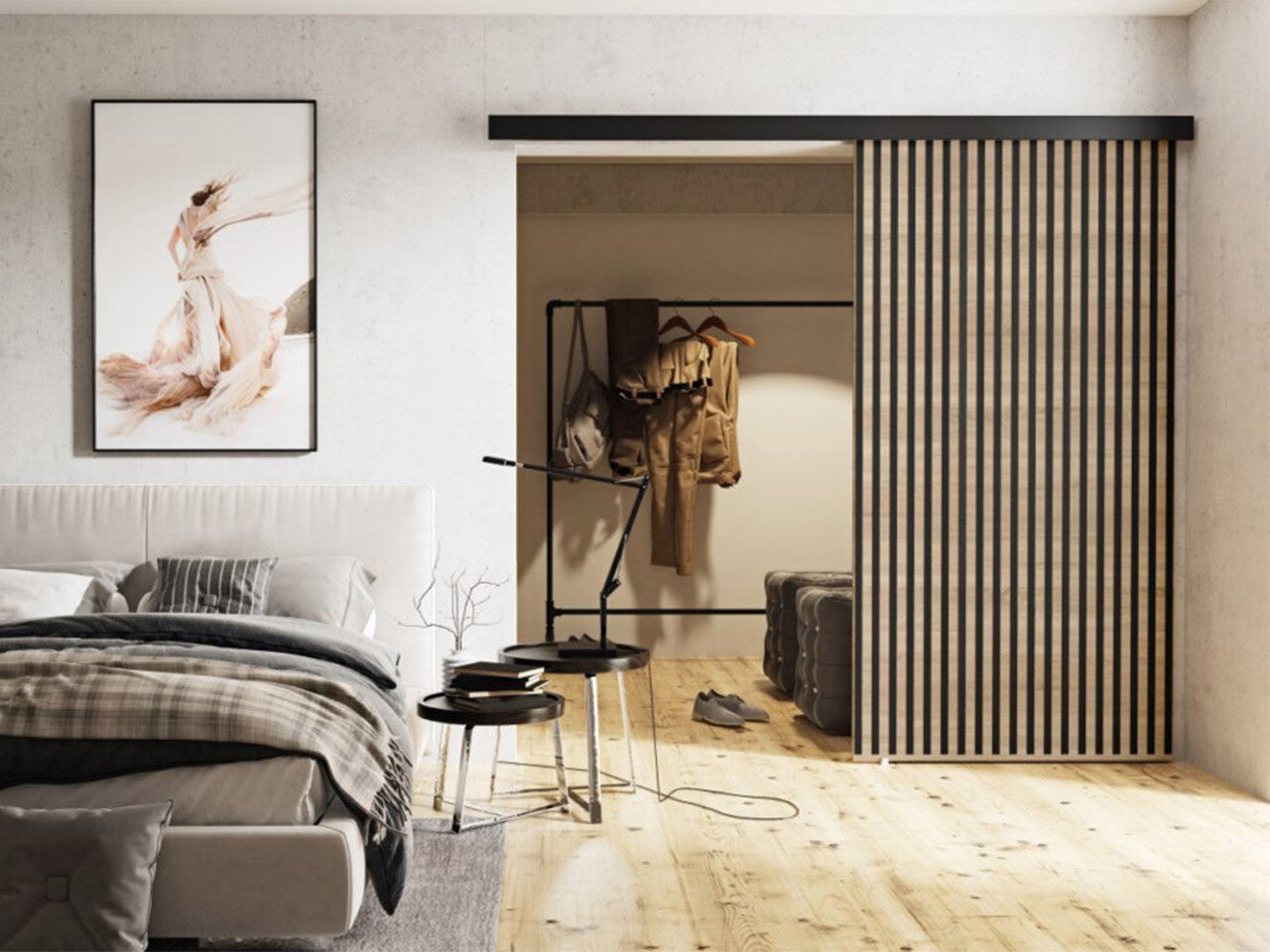 Tolóajtók Drzwi BELMO 100 + samodomykacz, Szín: Sonoma tölgy + Fekete