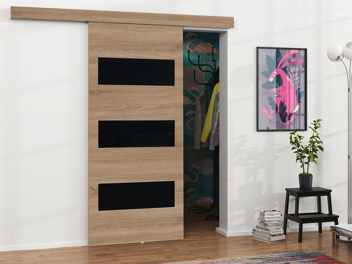 Tolóajtók Drzwi MALIBU WZORY M-2 100 + samodomykacz, Szín: Sonoma tölgy + Fekete