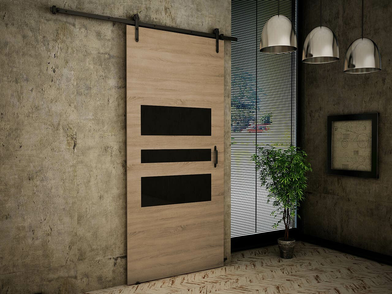 Tolóajtók Drzwi RETRO 1 80 + samodomykacz, Szín: Sonoma tölgy + Fekete