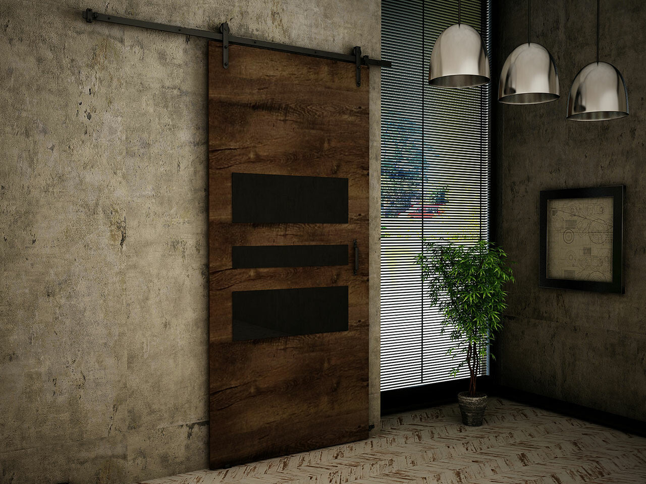 Tolóajtók Drzwi RETRO 1 80 + samodomykacz, Szín: Sötét kőris + Fekete