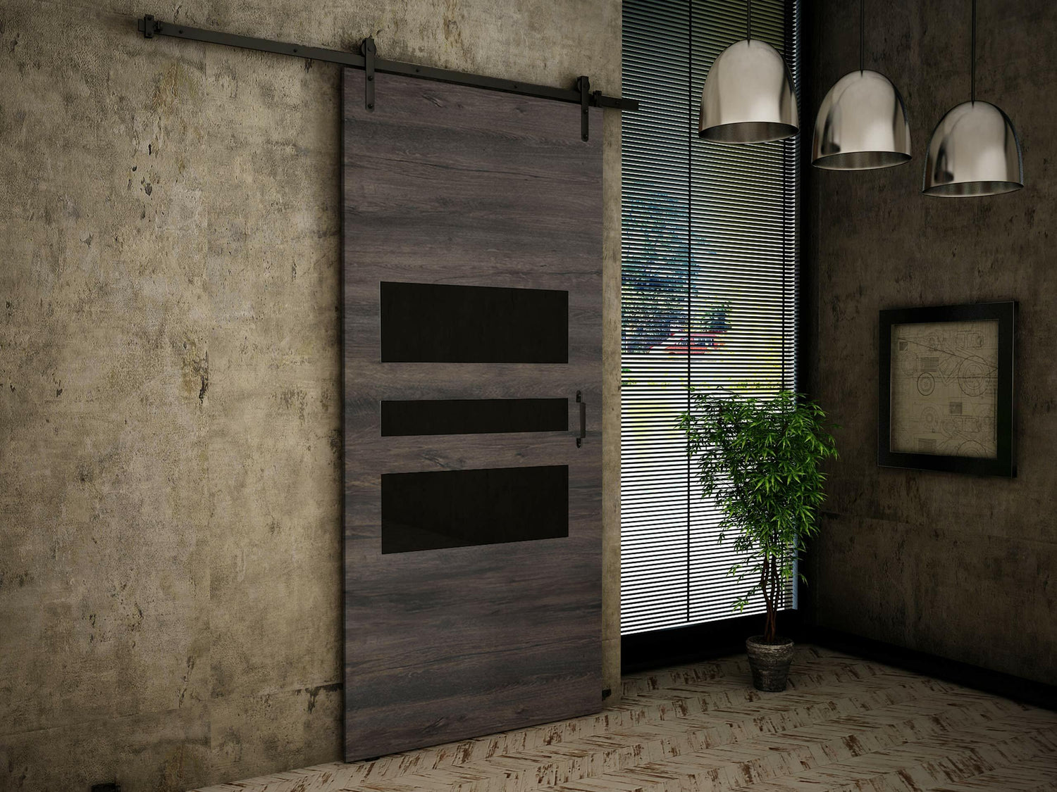 Tolóajtók RETRO 1 90 + samodomykacz, Szín: Sötét hamuszürke + Fekete