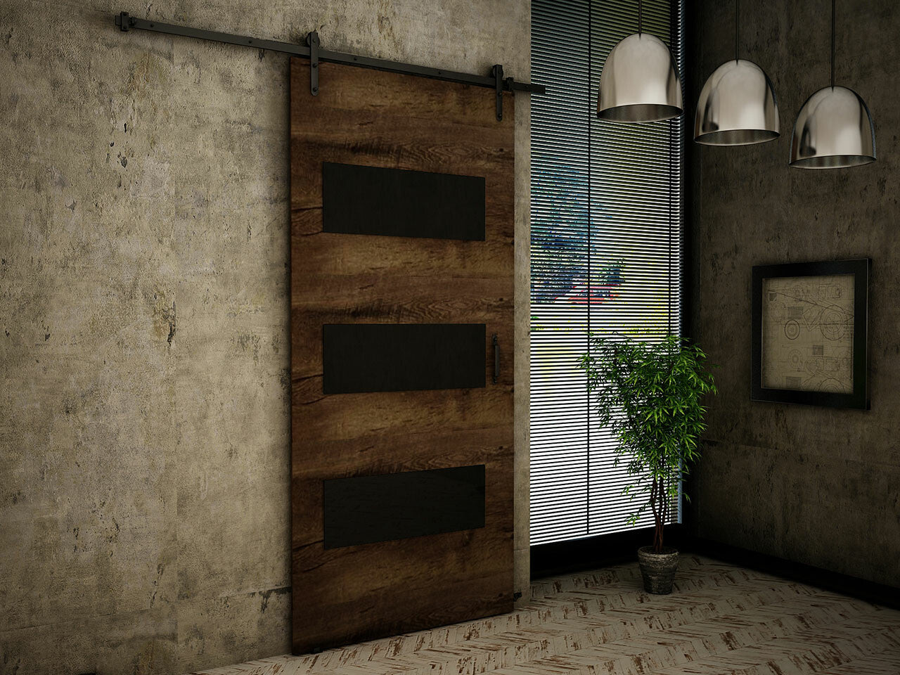 Tolóajtók Drzwi RETRO 2 90 + samodomykacz, Szín: Sötét kőris + Fekete