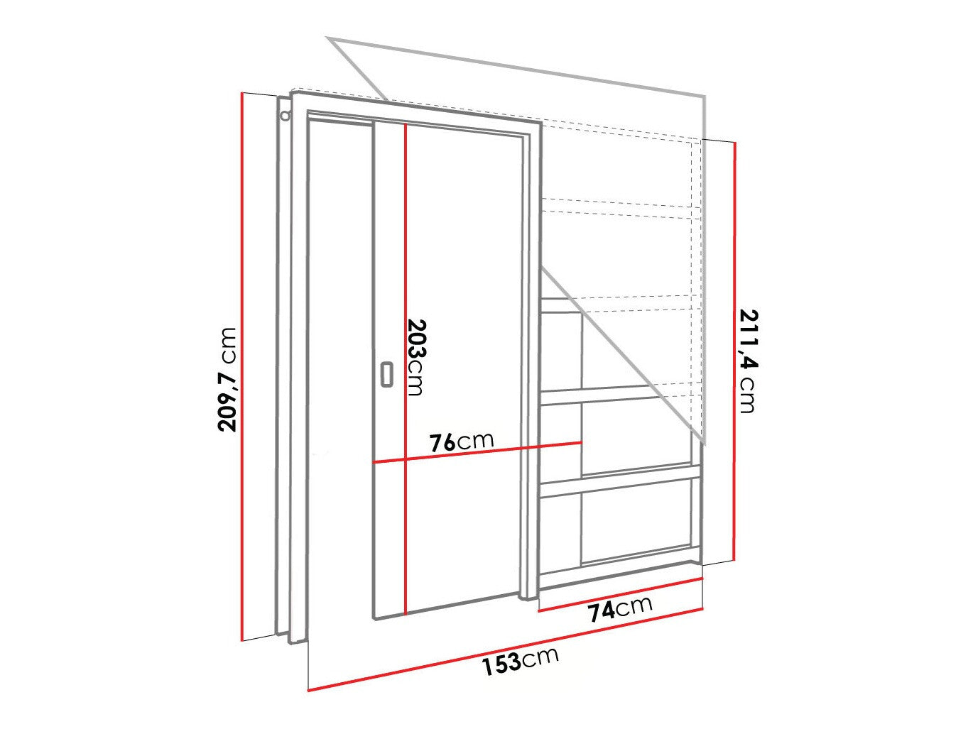 Tolóajtó rendszer méretei211.4 x 153 cm