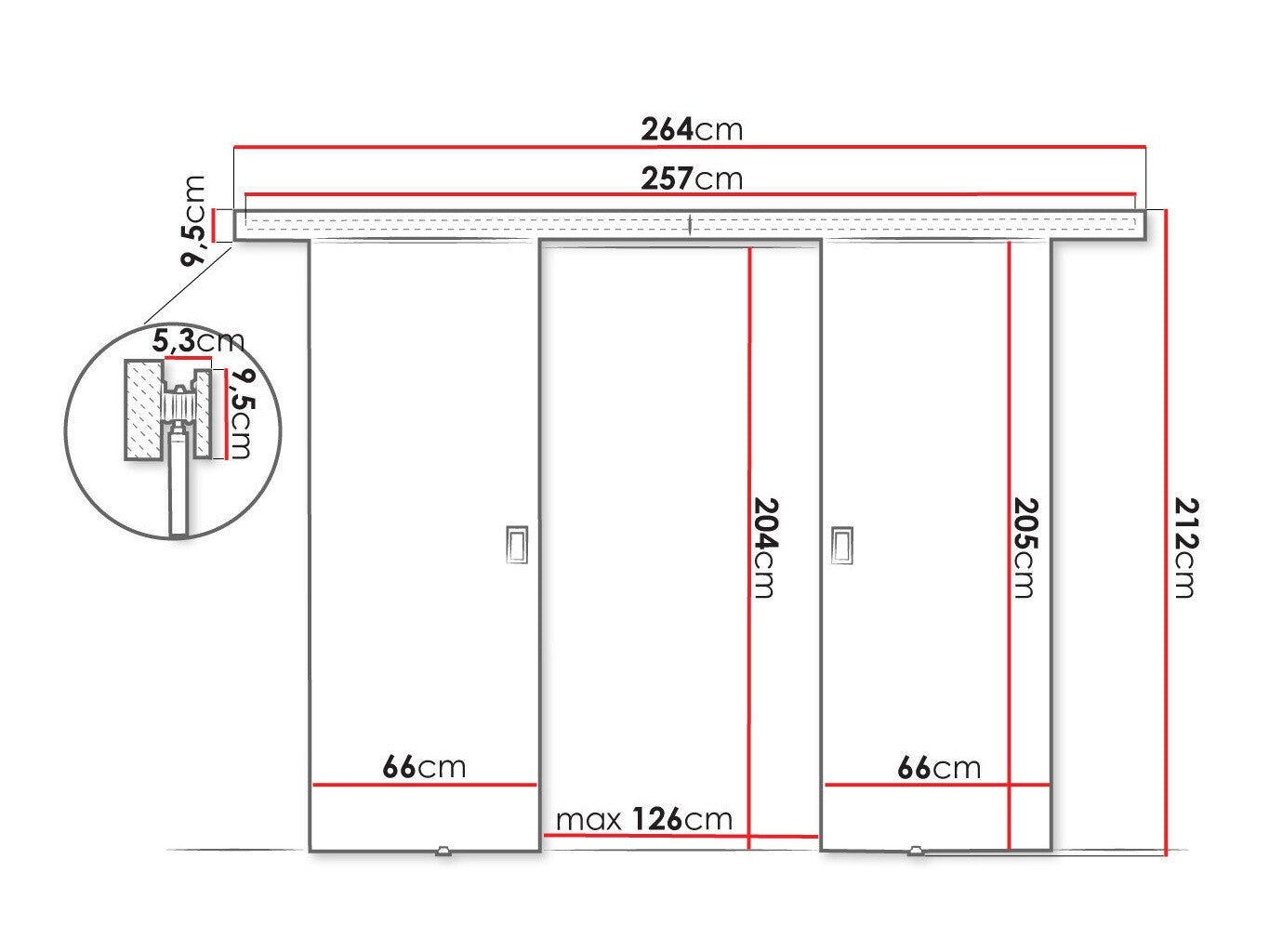 Tolóajtók Drzwi WERDI DUO 132 + 2x samodomykacz, Szín: Fekete