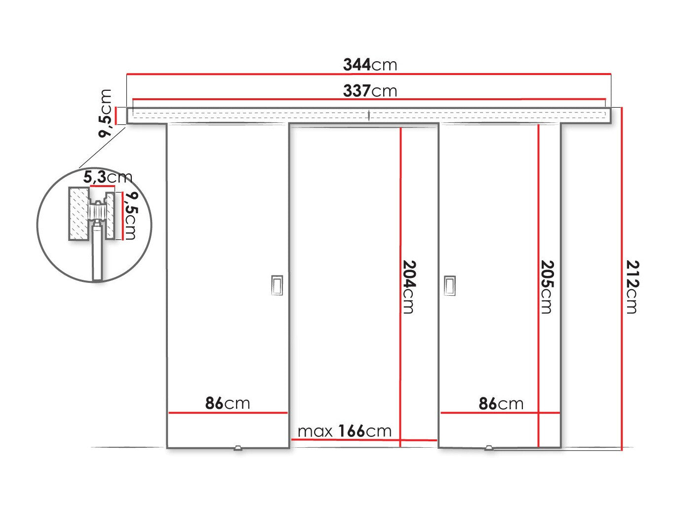 Tolóajtó rendszer méretei337 cm