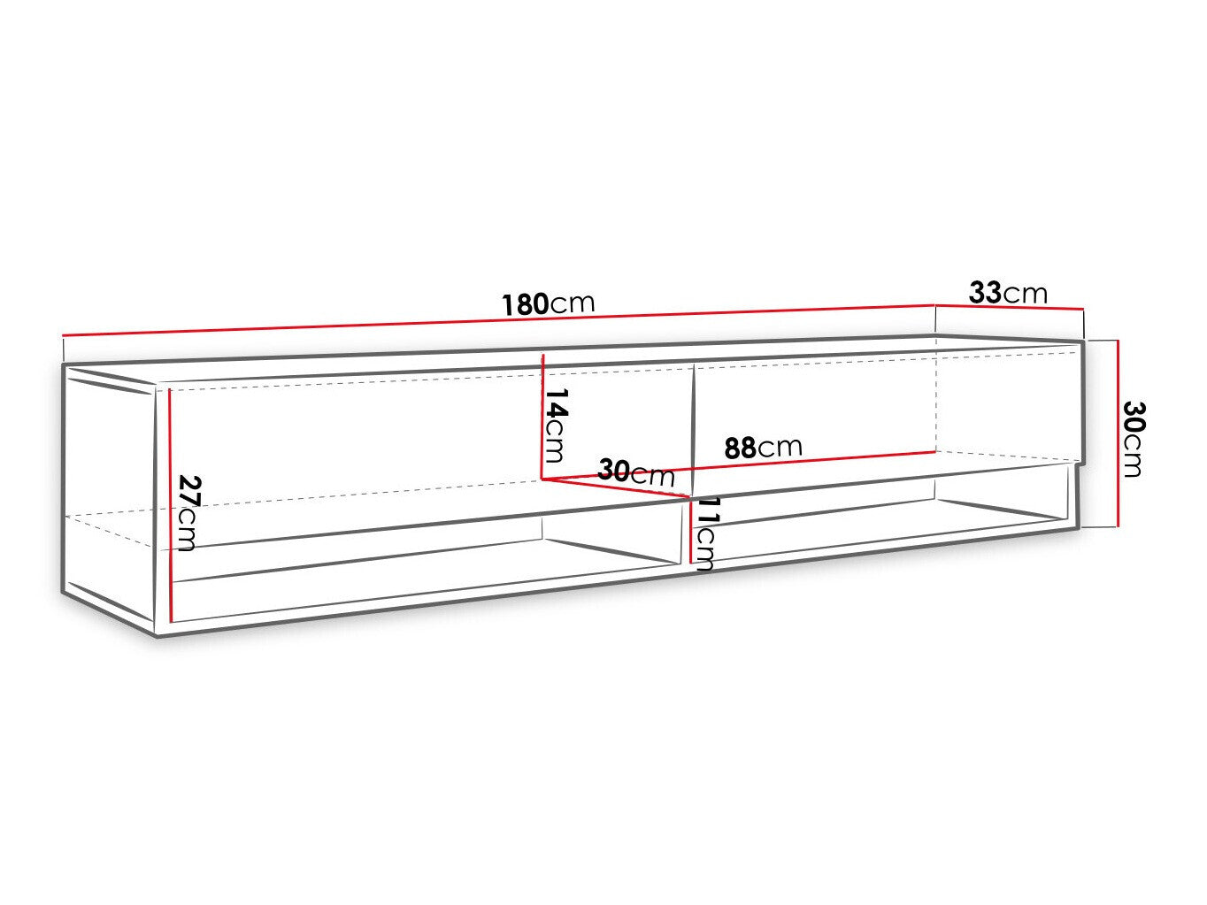 TV-állvány Lowboard A180 (Adenik 180), Led világítás: Igen, Szín: Grafit + Fekete