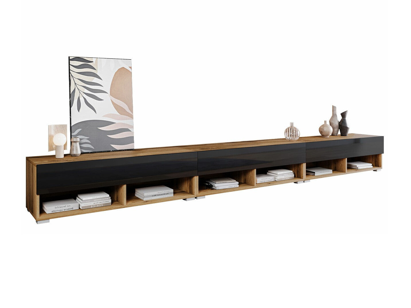 TV-állvány Lowboard A300 (Adenik 300), Szín: Wotan tölgy + Fényes fekete, Led világítás: Igen
