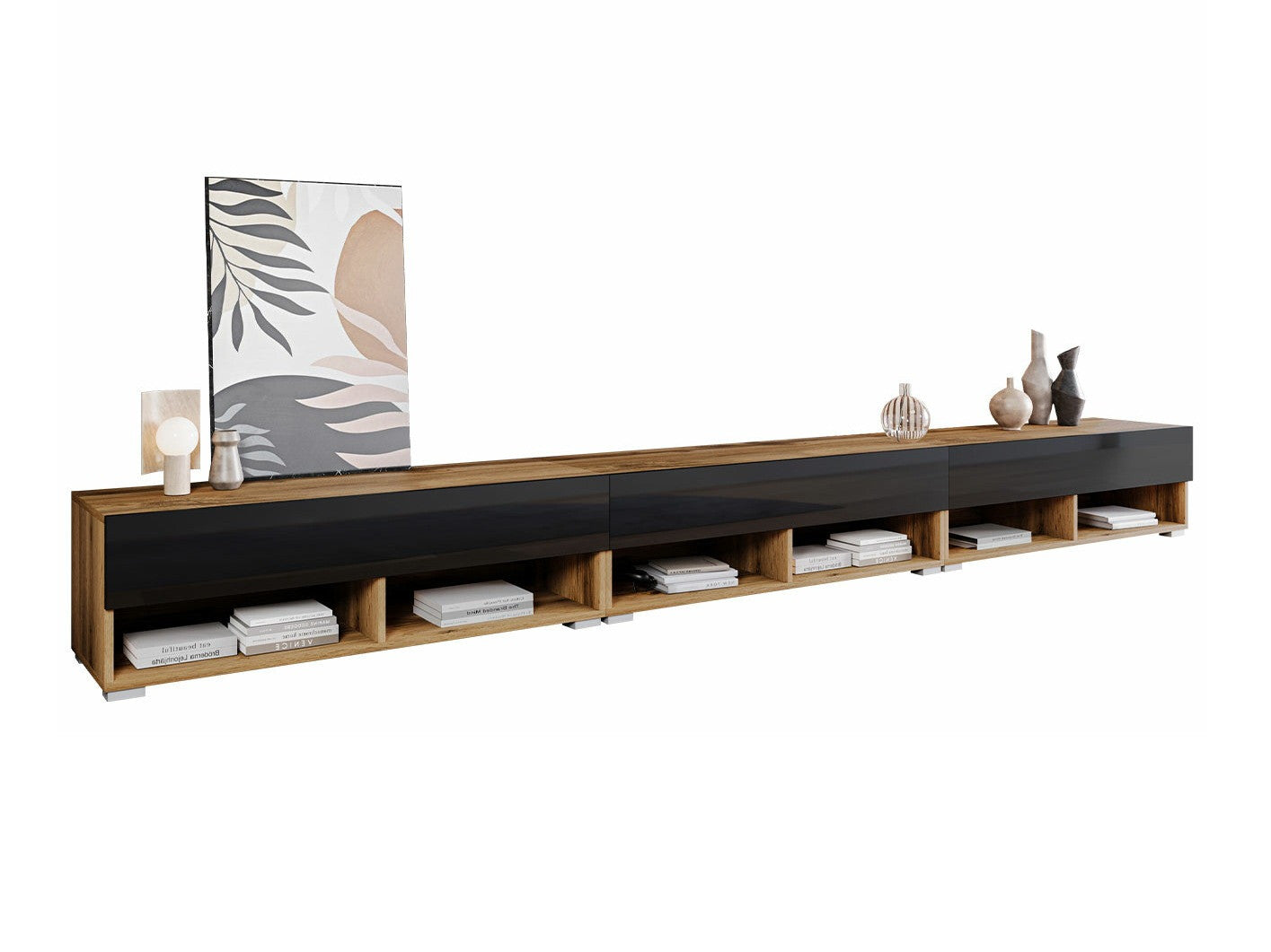 TV-állvány Lowboard A300 (Adenik 300), Szín: Wotan tölgy + Fényes fekete, Led világítás: Nem