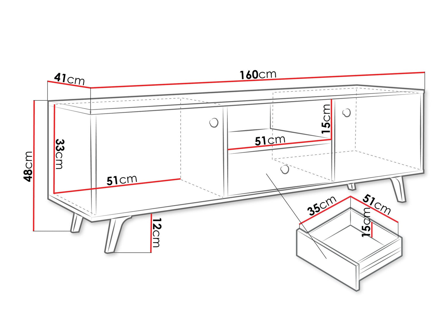 TV-állvány Stolik RTV SIENA Biały + Złoty, Szín: Fekete