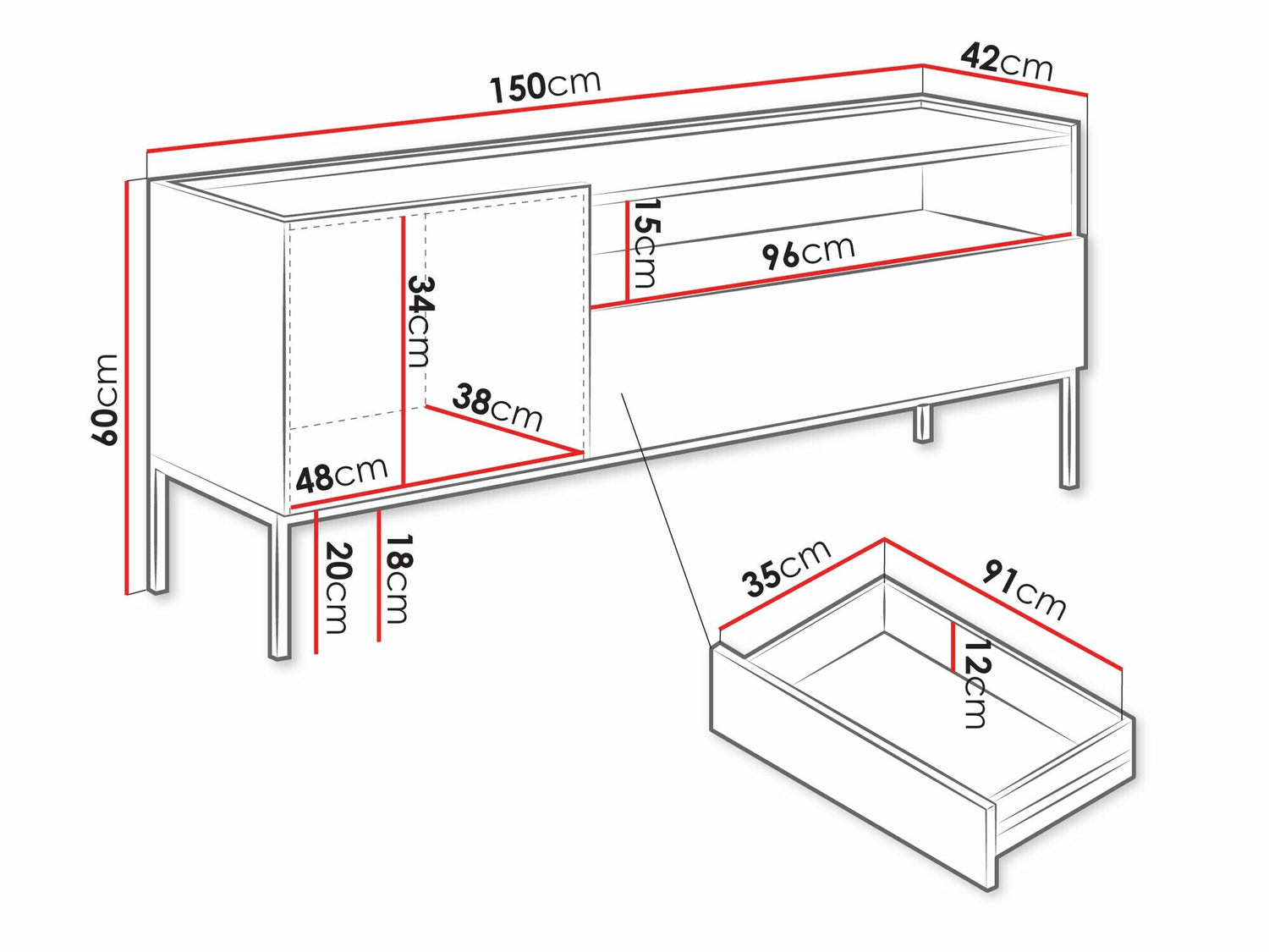 TV-állvány Szafka RTV COMO 150 1D1SZ, Szín: Artisan tölgy + Fekete