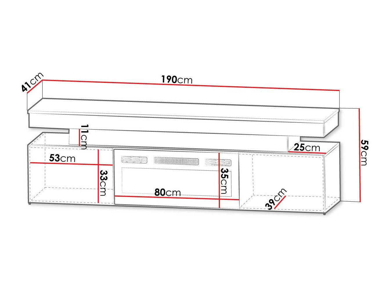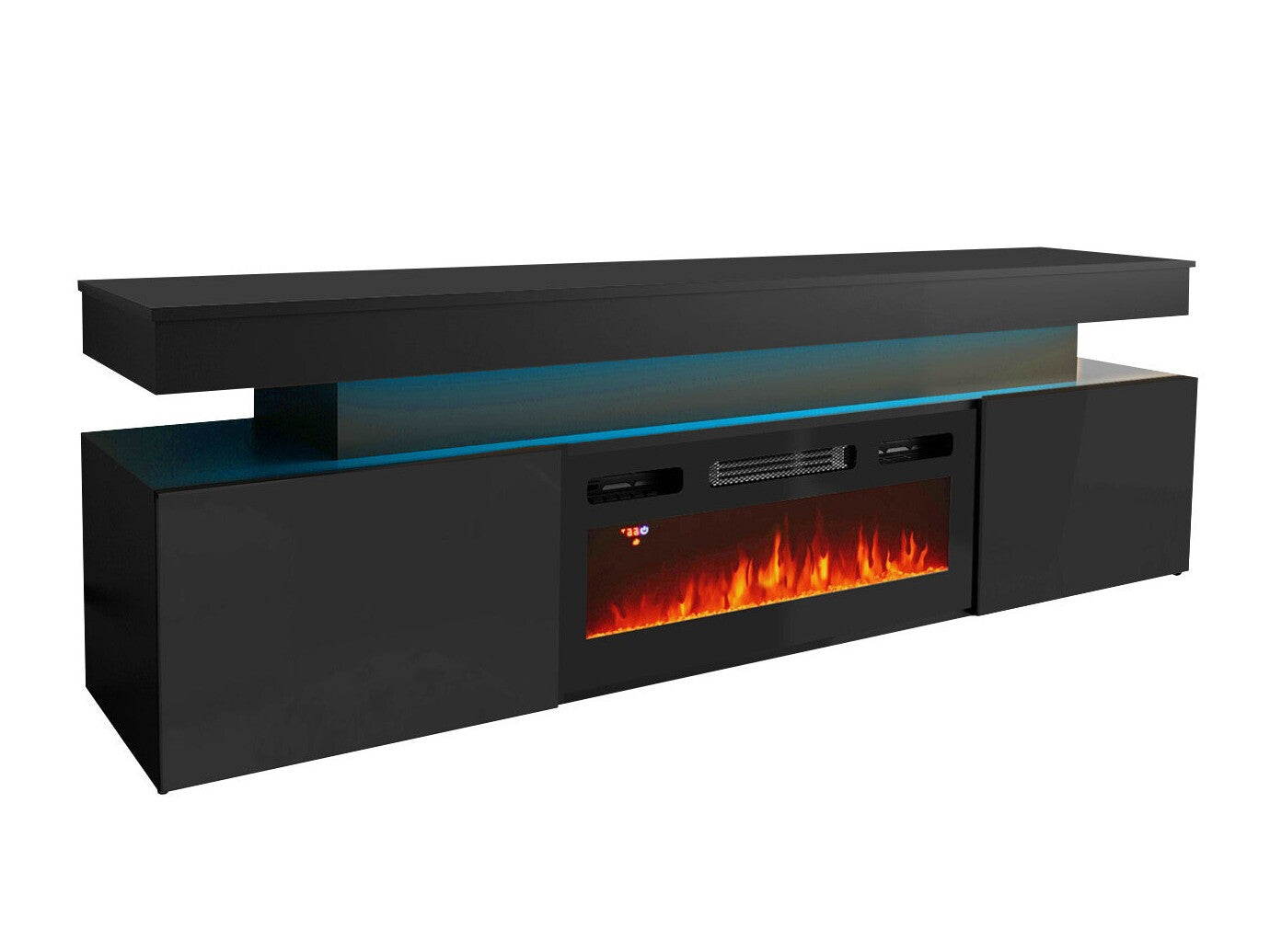 TV-állvány Szafka RTV EF 2D GLOSSA + LED + kominek (Lestirola) , Szín: Fekete + Fényes fekete