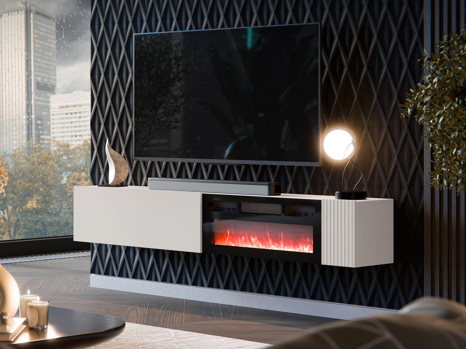 TV-állvány Szafka RTV EF CAPITAL + kominek, Szín: Kasmír