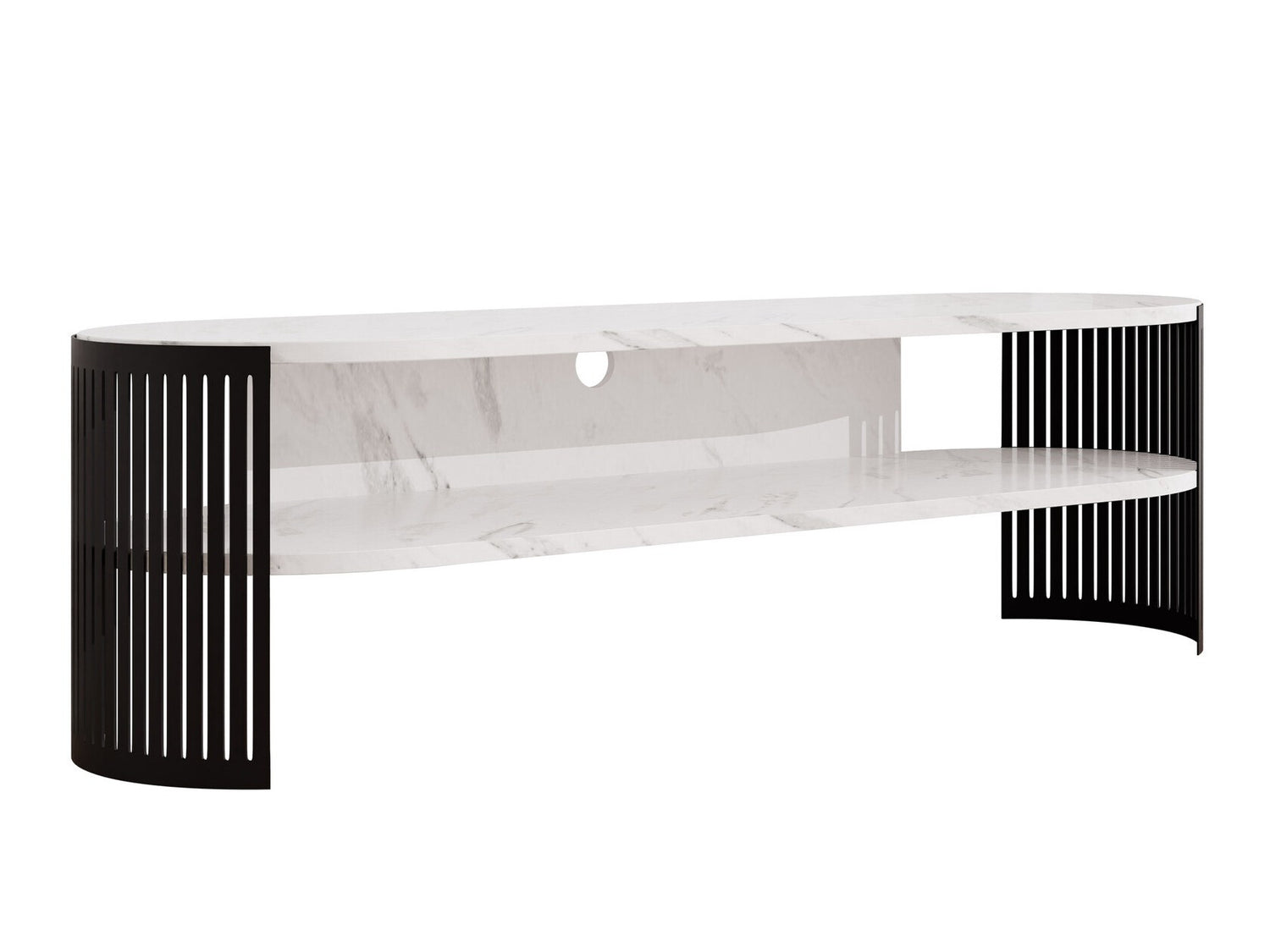 TV-állvány Szafka RTV owalna FIKOLI, Szín: Fekete + Fehér márvány