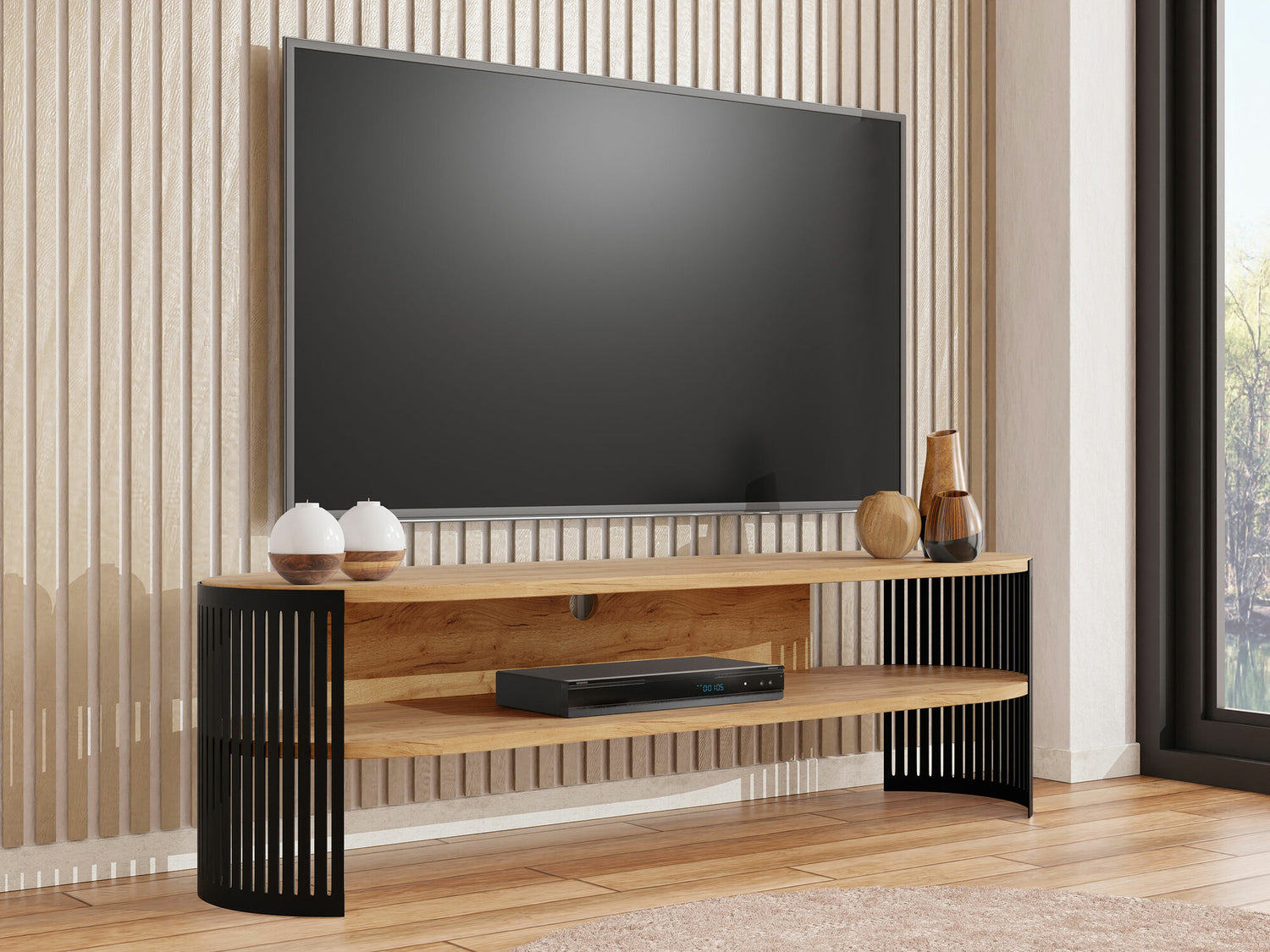 TV-állvány Szafka RTV owalna FIKOLI, Szín: Fekete + Kézműves aranytölgy