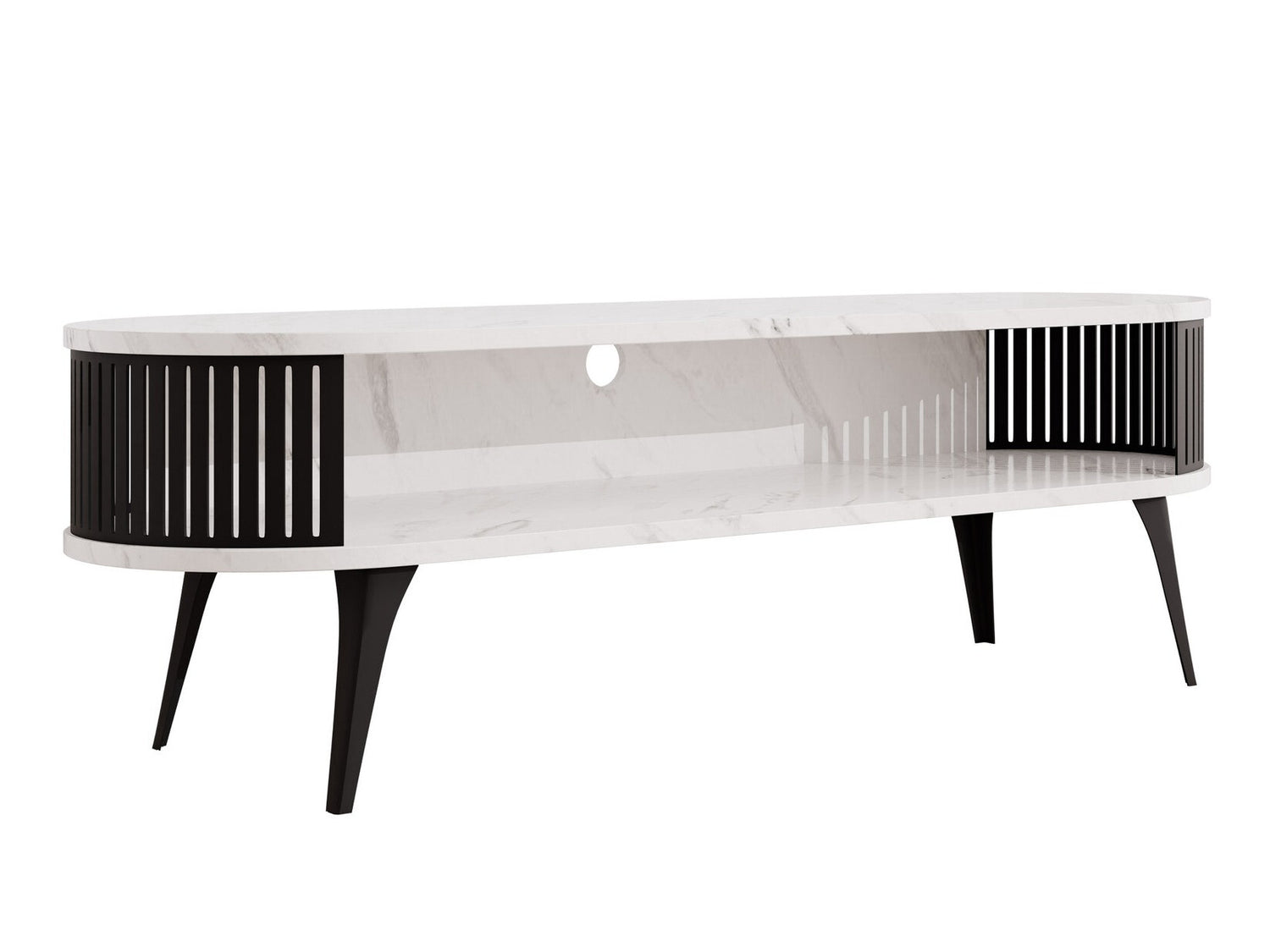 TV-állvány Szafka RTV owalna ROENNI, Szín: Fekete + Fehér márvány
